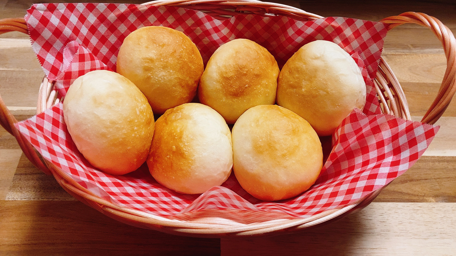 完成★あつあつの焼きたてパンをちぎると、もっちりふわふわ♪